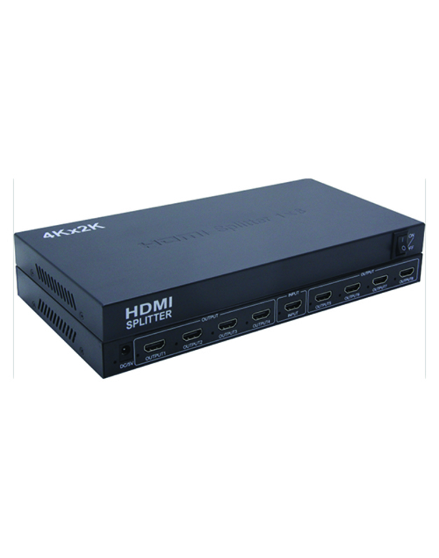 Šis HDMI 4K 1x8 daliklis leidžia per vieną HDMI įrenginį rodomą vaizdą lengvai padalyti į aštuonis suderinamus monitorius ar projektorius. Taip pat, jis gali būti naudojamas ilgo kabelio gale, kad atkurtų HDMI signalą. HDMI daliklio skiriamoji geba gali būti iki 3840x2160/30Hz.