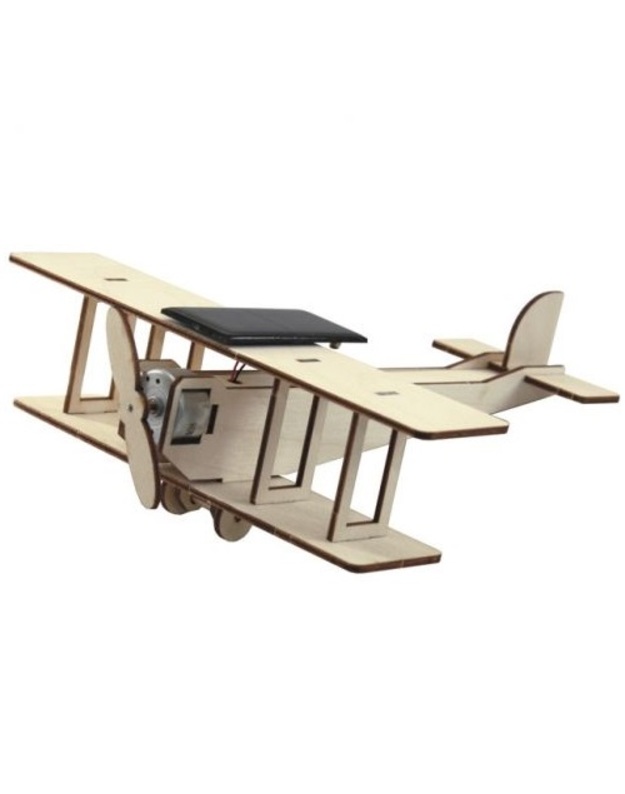 Saulės šviesai patekus į nedidelę saulės bateriją, pritvirtintą ant šio dvisparnio lėktuvo stogelio, jo propeleris pradės suktis. Deja, šis lėktuvas dar nepakils: reikėtų kur kas galingesnio variklio, didesnio saulės elemento ir sraigto, kad jis galėtų atsiplėšti nuo pakilimo tako. Šis rinkinys skirtas sužadinti vaiko vaizduotę ir parodyti, kaip veikia saulės energija.
