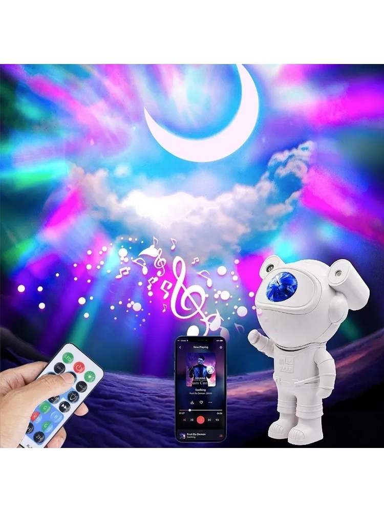 Neįprastas astronauto formos LED žvaigždžių projektorius. Integruotas lazeris leidžia projektuoti žvaigždes ar galaktikas net 8 pavidalais. Besisukanti galvutė (360 laipsnių) leidžia projektuoti plačioje plokštumoje ir dideliu atstumu. Galima reguliuoti šviesos diodų ryškumą, sukimosi greitį ir veikimo laiką. Patogus IR nuotolinio valdymo pultas leidžia lengvai nustatyti projektoriaus žmogų iš toli. Dėl patrauklaus dizaino ir daugybės nustatymo galimybių tai puiki dovana vaikui.