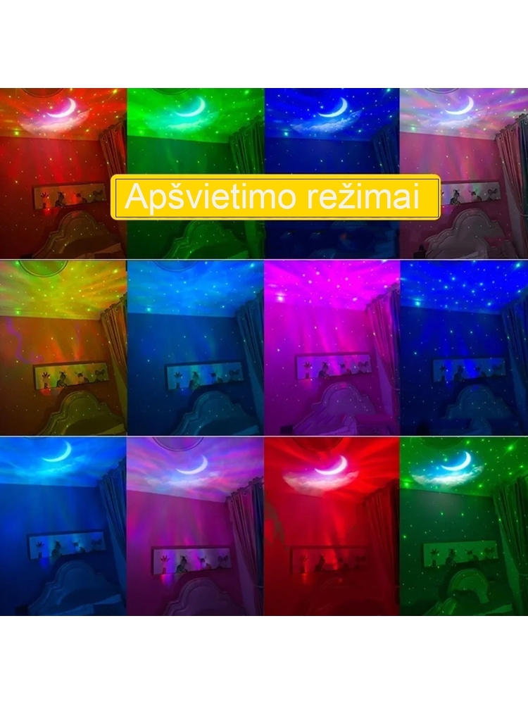LED žvaigždžių ir galaktikų projektorius su lazeriu projektuoja naktinio dangaus vaizdą Jūsų kambaryje. Galima naudoti kaip belaidę kolonėlę arba naktinę lemputę.