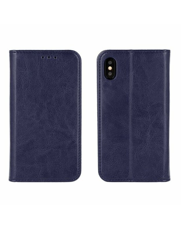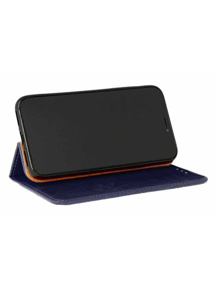 Samsung S21 Plus, Natūralios odos su guminiu remeliu ir magnetu, melynas