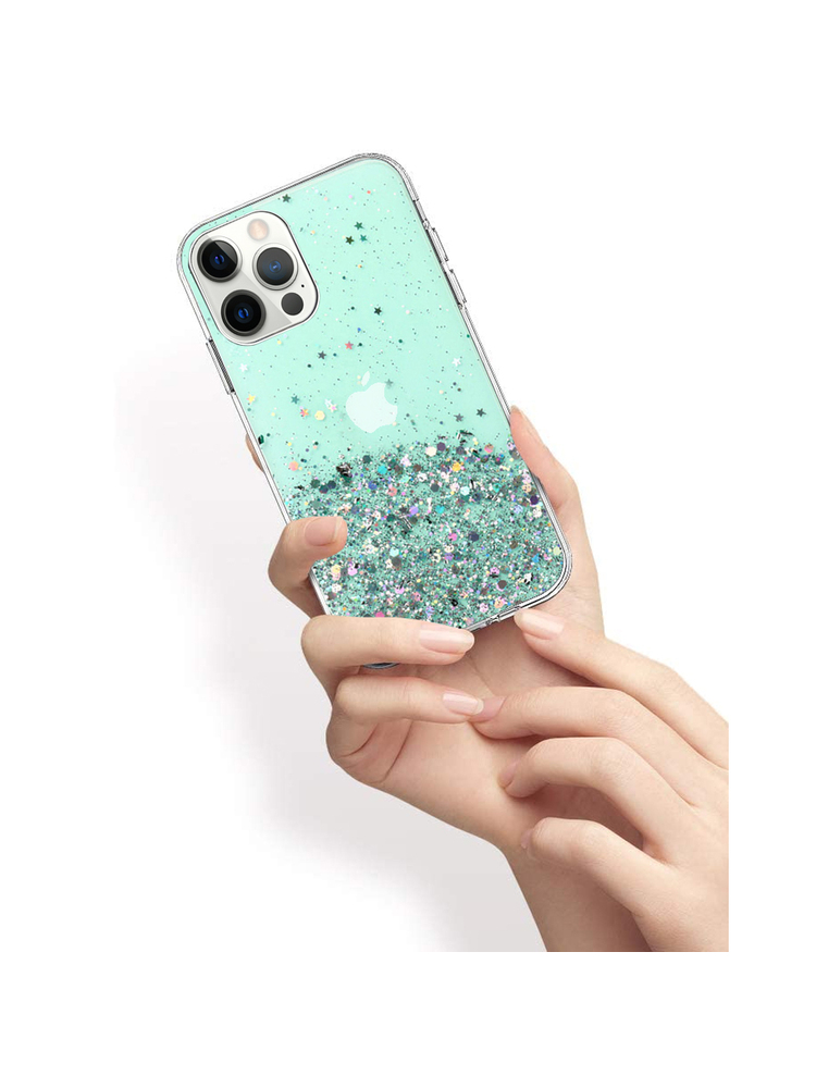 Užpakalinėje perdangos dalyje yra kameros išpjovos. Dėklas puikiai apsaugos nuo įbrėžimų, smūgių, purvo ir dulkių. Dangtelis apsaugo telefono nugarėlę, šonus ir kampus. Korpuso šonai pagaminti iš lanksčios silikoninės medžiagos, kuri puikiai priglunda prie telefono. Perdangos nugarėlė pagaminta iš plastiko su blizgučiais su įkomponuotais žvaigždutėmis (blizgučiai neperpildo). Tai tikrai išskirs jūsų išmanųjį telefoną iš šimtų kitų.