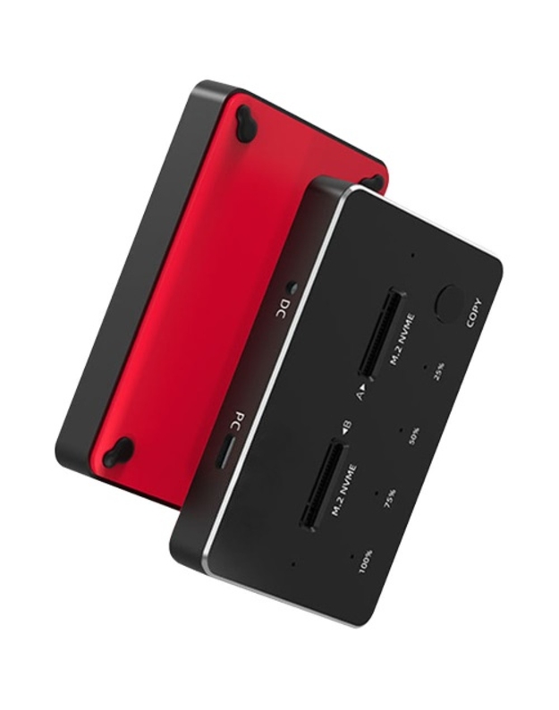Dviejų SSD diskų nuskaitymo ir klonavimo įrenginys su USB 3.2 Type-C sąsaja. Tinkamas M.2 SATA ir NVMe prievado SSD diskams.